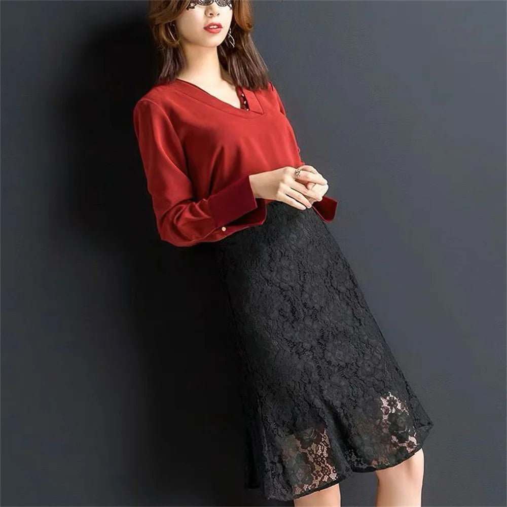 Lace Fishtail Women's Skirt 2025 Spring Summer New Female Mid-Length A-Line Pleated Package Hips Skirt Office Ladies One Step